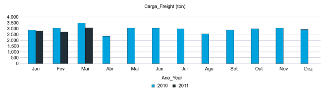 No dominio da carga, as estatísticas continuam a decrescer, com 3.079,7 toneladas processadas este mês (-11,5% / 402t) e 8.594,9 processadas durante o primeiro trimestre (-8,6% / 805,6).