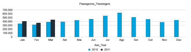 Assim, no total de 2011 até 31 de Março, passaram pelo AFSC 1.216.711 passageiros, mais 176.477 (+17%) que em 2010. Mantendo este ritmo de crescimento, será possível voltar a estabelecer um novo recorde anual acima dos 6 milhões de passageiros, sendo para isso necessário manter os valores do crescimento acima dos 13,6% no número de passageiros. Será também interessante verificar o desempenho durante os meses de Abril e Maio, devido às perturbações provocades pelo Eyjafjallajökull, o agora famoso vulcão islandês que provocou o caos nos principais aeroportos europeus.