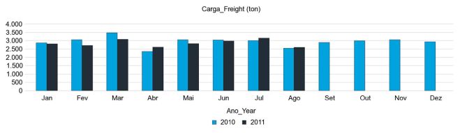 A carga continua a mostrar ténues sinais de recuperação, tendo sido processadas 2.594 toneladas (+40,2 /1,6%). Em terreno positivo temos a TNT (+146,7 / 82,1%), a Air France Cargo (+122,1 / 33,8%) e a TAAG (64 ton), enquanto em sentido contrário estão a TAP (-127,5 / 37,2%), a Star Air (-33 / 5%) e a Lufthansa (-32,8 / 19,5%).