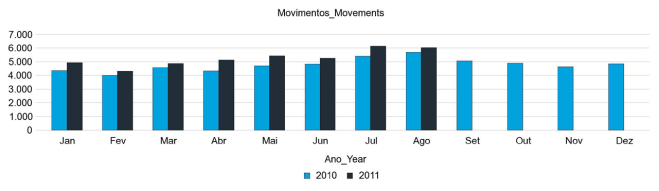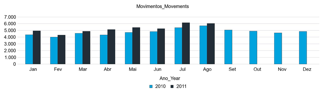 Registaram-se 6.044 movimentos (+354 / 6,2%), um número abaixo do conseguido no mês passado, e que teve como principais protagonistas a Ryanair (+363 / 35,3%), e easyJet (+77 / 14,8%) e a TNT (+39 / 86,7%), bem como a Luxair (-36 / 23,5%), a White (-24 / 29,3%) e a Privilege Style (-14 / 38,9%).