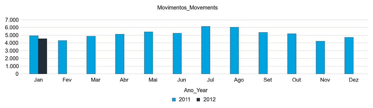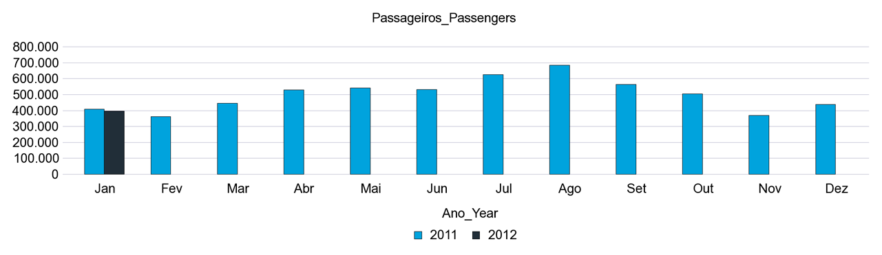 O Aeroporto Francisco Sá Carneiro começou 2012 com 397.419 passageiros (-9.115 / 2,6%), 4.548 movimentos (-348 / 7,8%) e 2.764,2 toneladas de carga (-44,8 / 1,6%). Seguindo a tendência da presente temporada (W11), o Aeroporto viu a sua oferta reduzida em 64.994 lugares (-10,2%) durante o mês passado, situação que explica em grande parte a perda de passageiros nesse período.