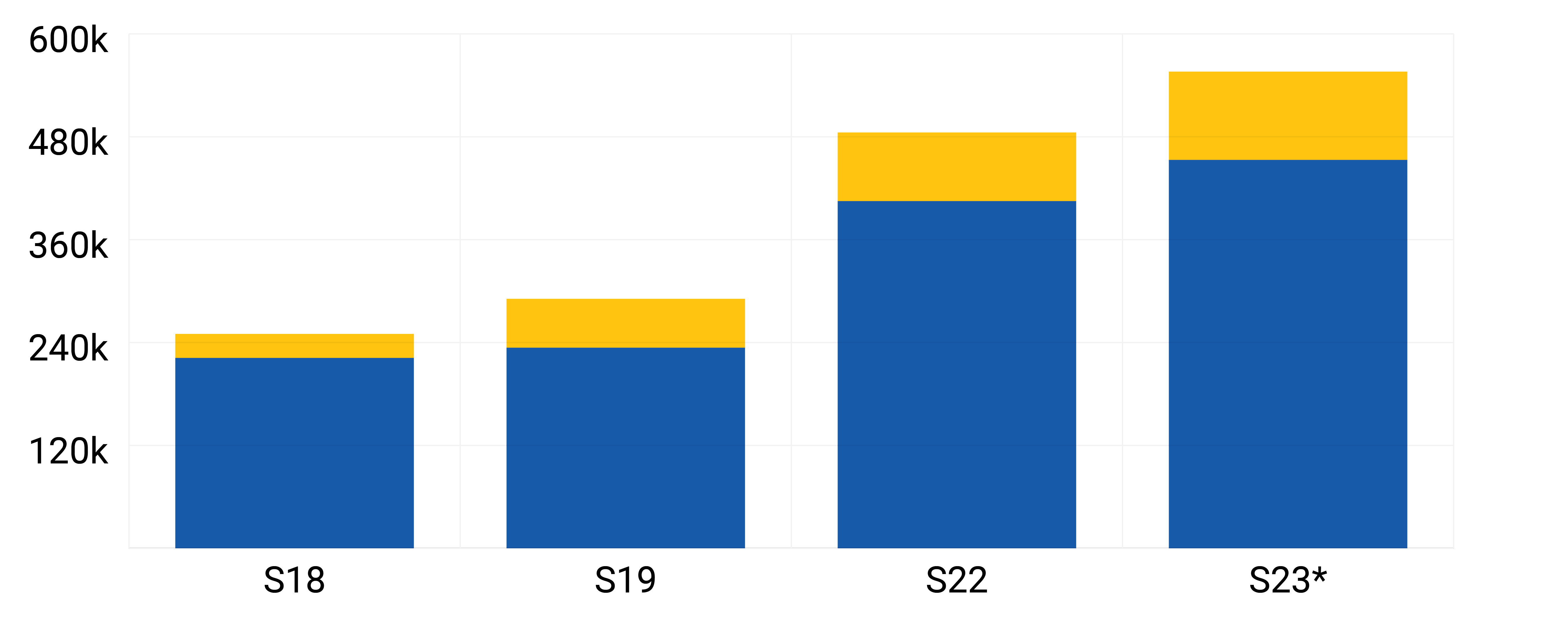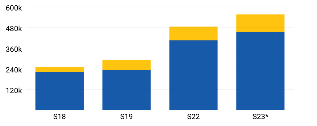 Serão 12, +2 que em S22. A Ryanair faz sempre a comparação conforme dá mais jeito.