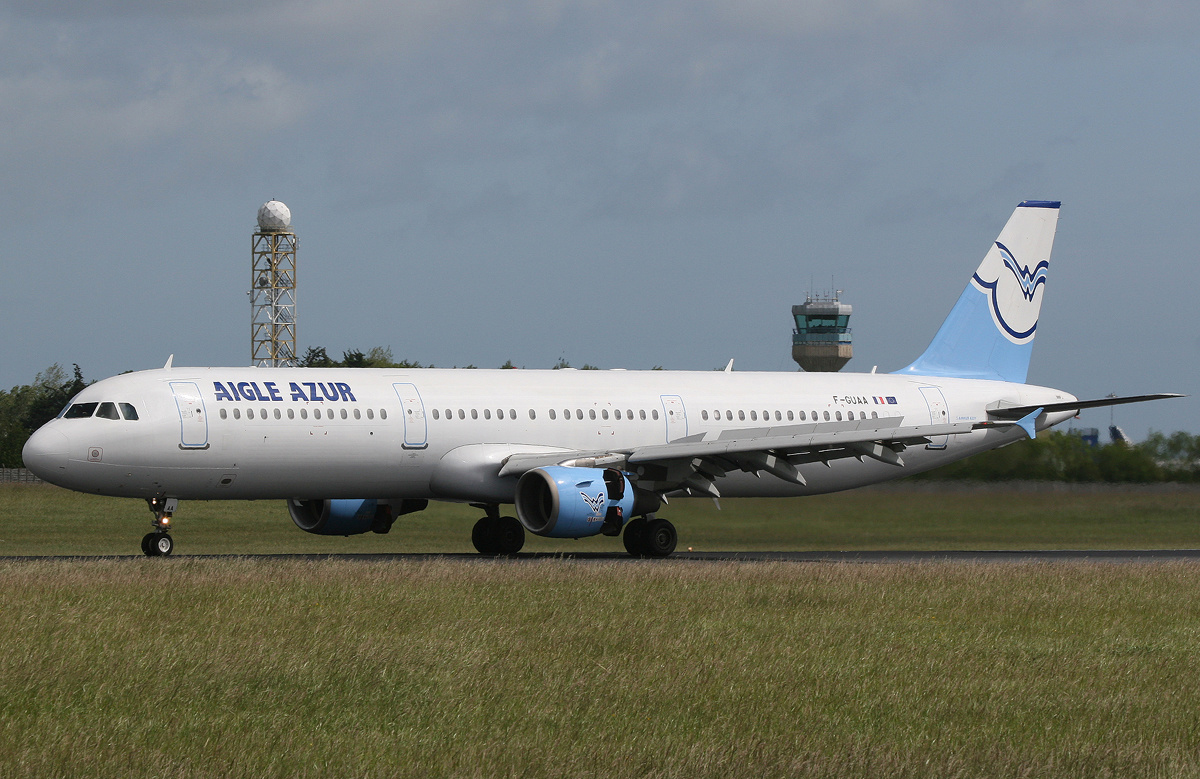 A321 da Aigle Azur na ponta Sul do terminal de passageiros. Foto tirada por Olivier Corneloup