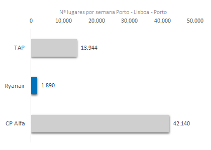 Os principais concorrentes da Ryanair entre OPO e LIS: a TAP e o Alfa. Dados: CP e OAG (semana de 05 a 11 Maio)